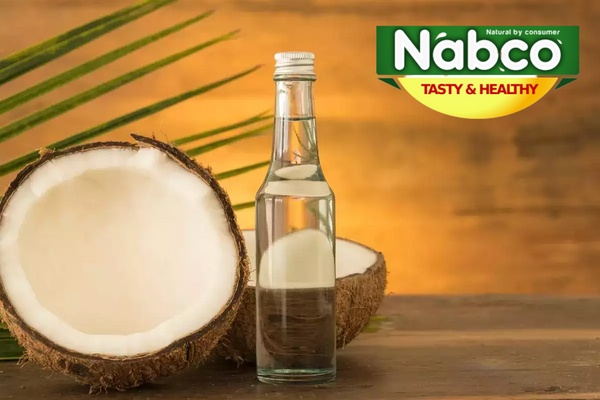 Coconut oil is an edible oil derived from the wick, meat, and milk of the coconut palm fruit. Coconut oil is a white solid fat; in warmer climates during the summer months it is a clear thin liquid oil, melting at warmer room temperatures of around 25 °C. Unrefined varieties have a distinct coconut aroma.